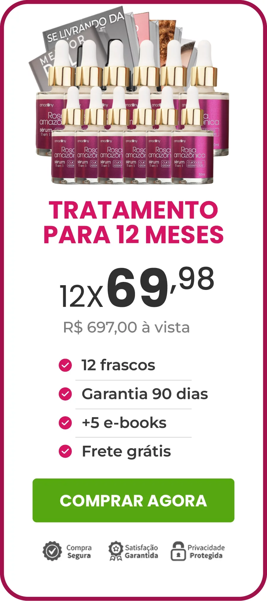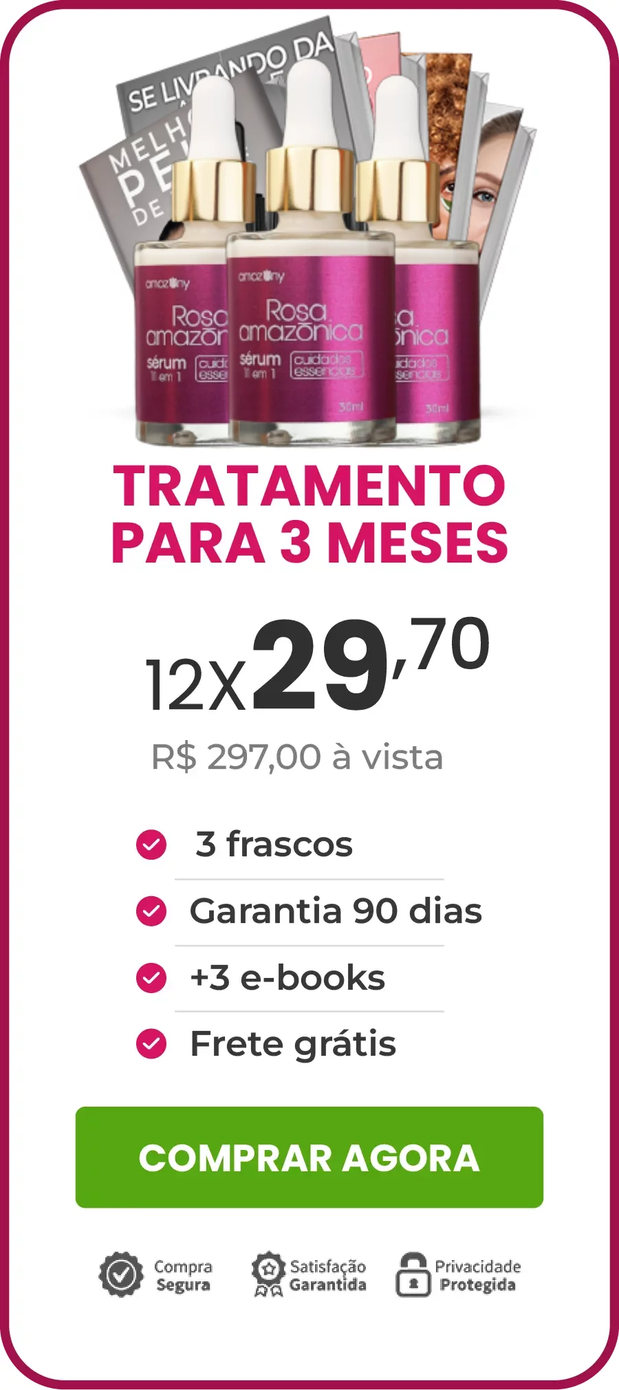 Não há contra-indicações ou efeitos colaterais, qualquer pessoa pode passar e aproveitar os benefícios do Sérum Rosa Amazônica. Entretanto é necessário observar se existe alguma alergia aos ingredientes do composto.